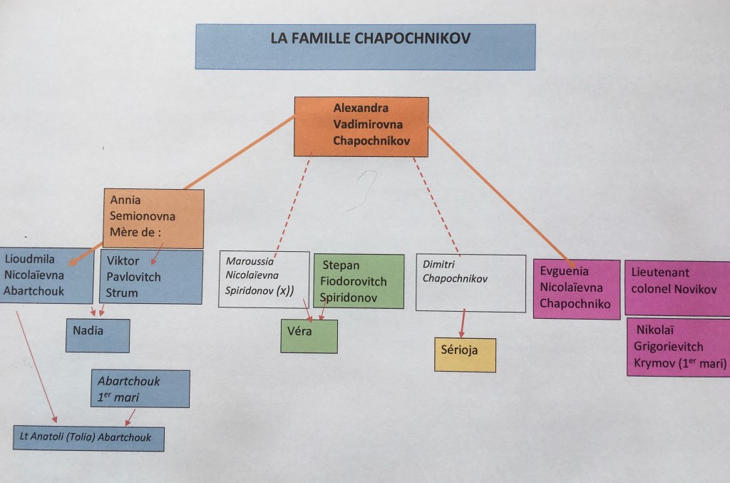 Dans la famille Chapochnikov, les femmes jouent un rôle essentiel. Elles ont les traits de mères courage comme Anna Semionovna Strum ou Alexandra Vladimirovna Chapochnikov.